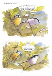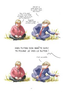 Des mésanges punk, des chefs d’états déchus de leurs fonction et désœuvrés (qui passent leur temps à faire des discours politiques entre eux, au sein de réunions type Alcooliques Anonymes car c’est dur de décrocher du pouvoir ! ) et un Donald Trump sous champi’ qui piste les belettes !